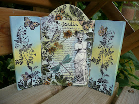 I like steampunk but find the grungier elements of it quite difficult to do without it just looking dirty, so I decided to combine it with a touch of gothic. I used a digital background paper, which by the time I finished was completely unrecognisable LOL. I used distress inks and some Graphic 45 stamps to punk up the background and then found by using black STAZON I could turn any metal embellishments black so everything got the stazon treatment including some copper german scrap. I used the lost coast stamp as my cental image and sprayed it with a few coats of varnish to make it nice and glossy and a black tassel and some chain to finish.